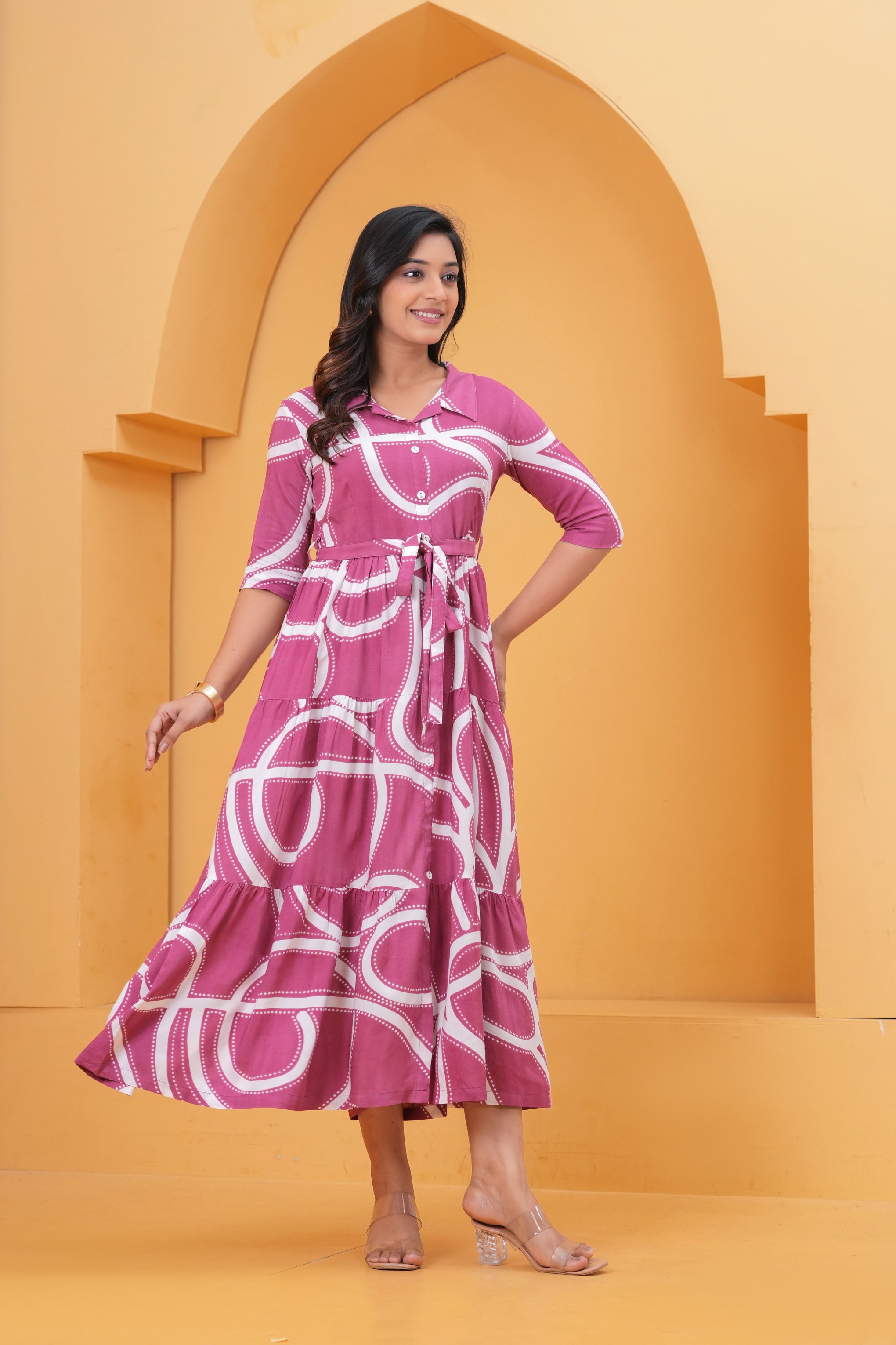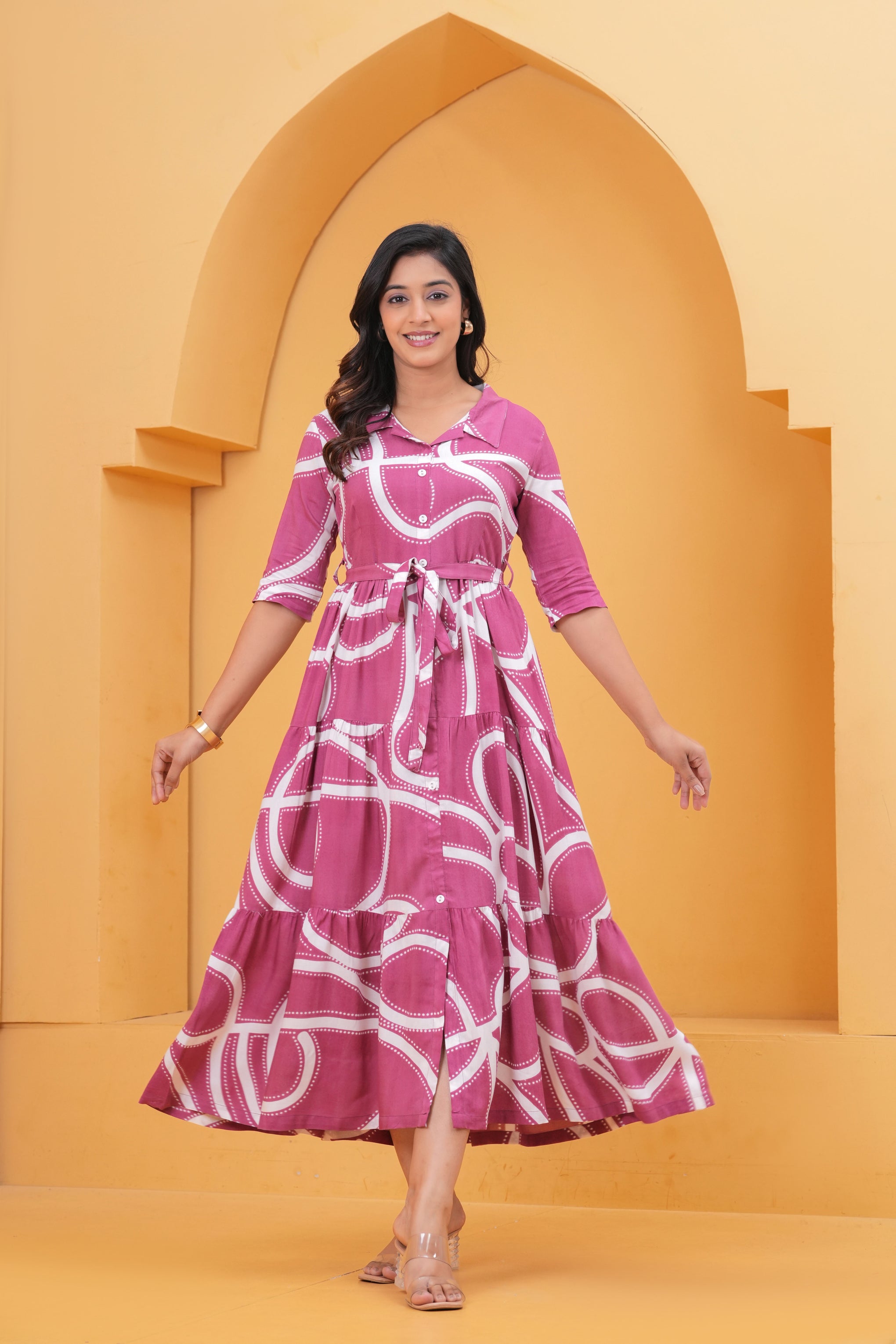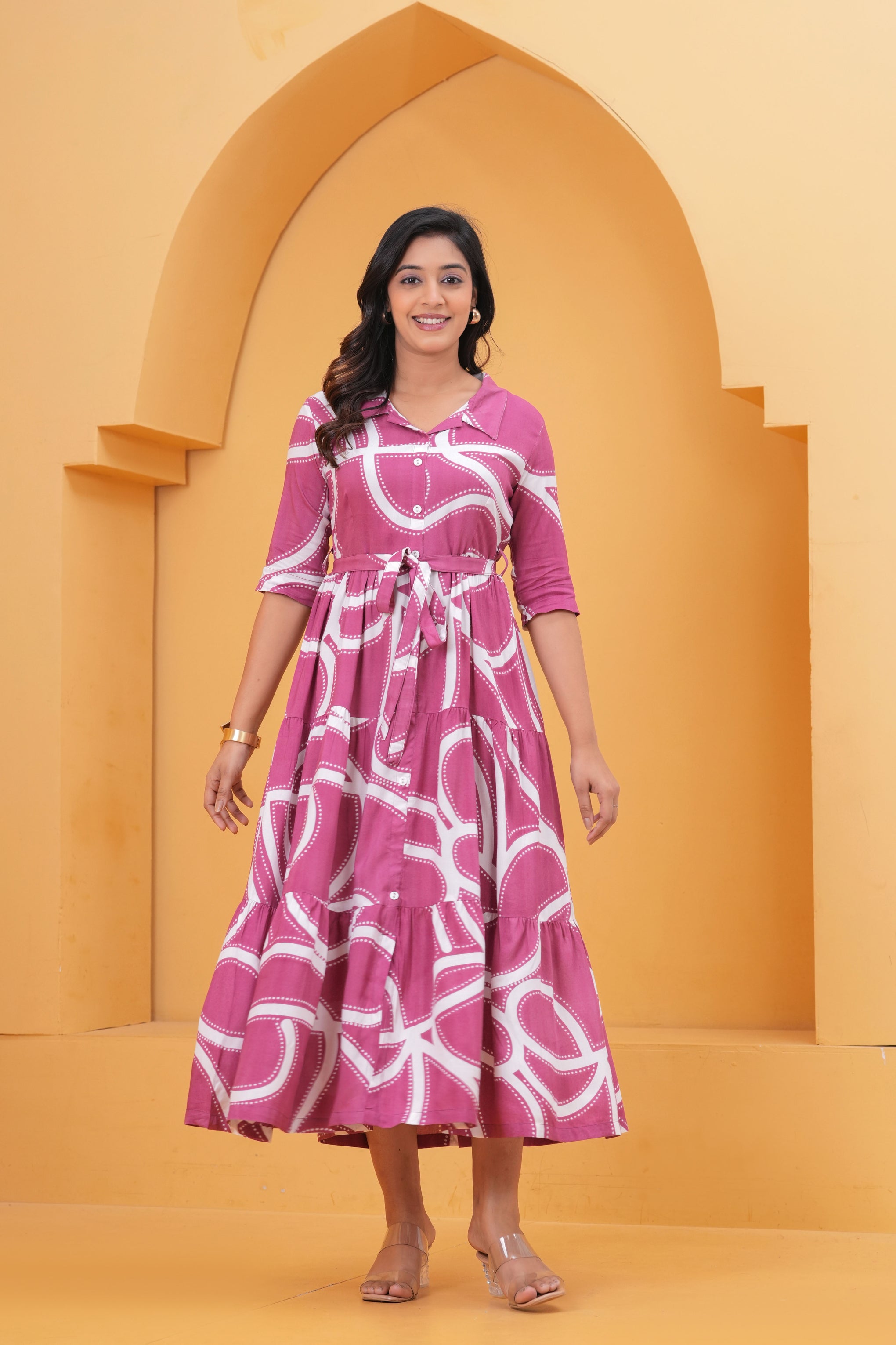 Key Features• Soft and breathable cotton fabric• Eye-catching abstract printed design• Flowy A-line maxi silhouette• Button-down front with waist tie-up belt• Perfect for casual outings and summer styling