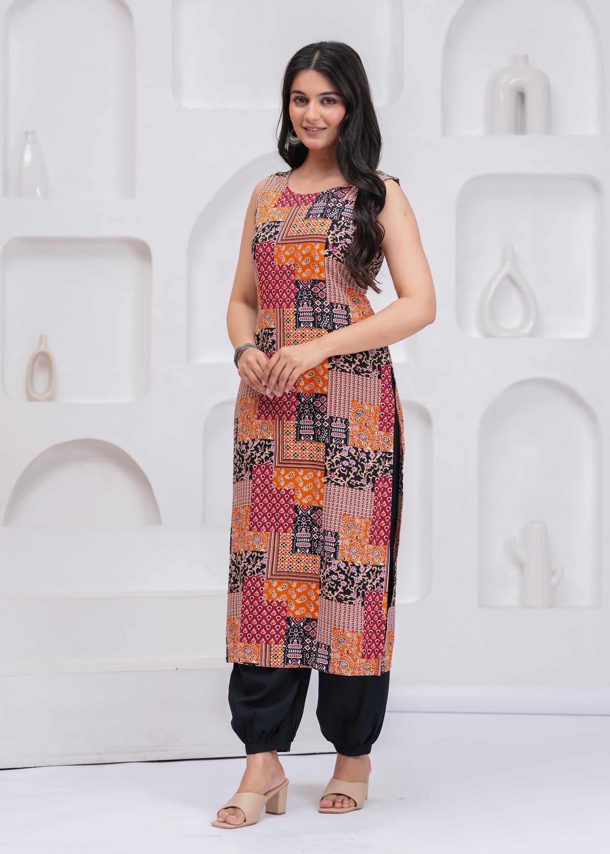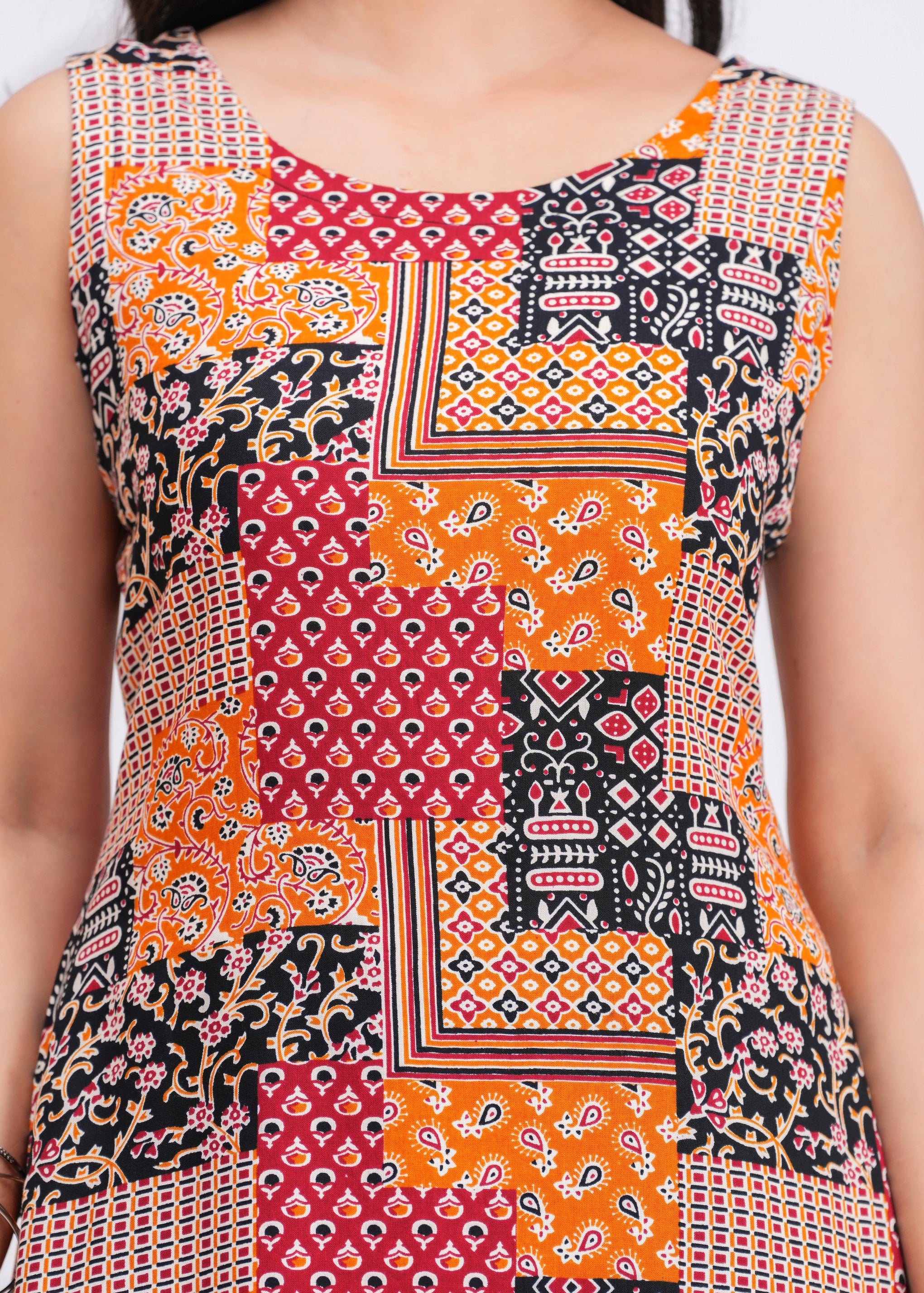 Key Features• All-over ethnic motifs printed design• Straight silhouette for a flattering fit• Round neck for a classic look• Sleeveless design for comfortable wear• Ideal for daily and casual occasions