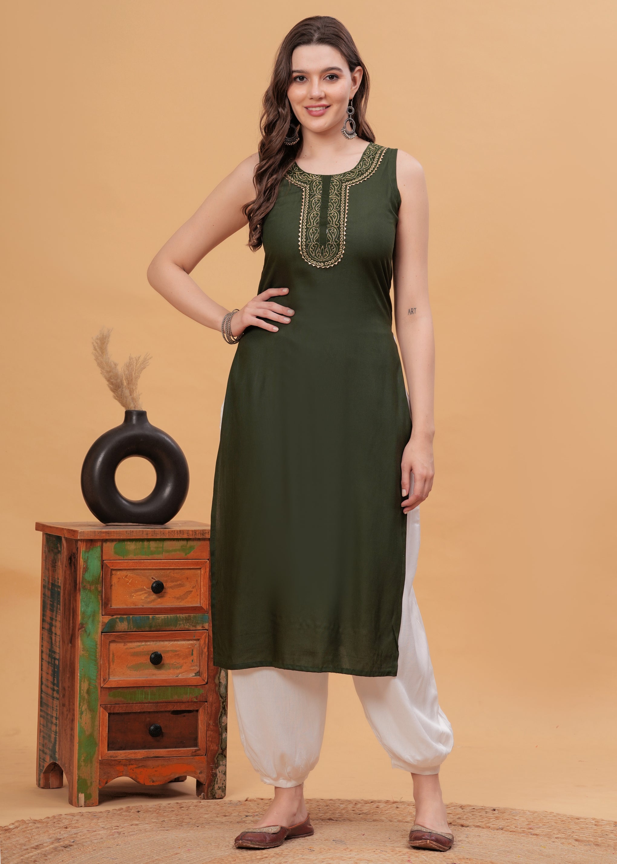 Elevate your ethnic wardrobe with this KALINI embroidered kurta set. Featuring elegant gotta patti detailing and paired with a classic Patiala, it offers a graceful festive look with comfortable wear.